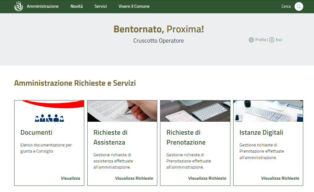 Per gestire tutte le istanze dei servizi configurati è necessario accedere al "Pannello Operatore".